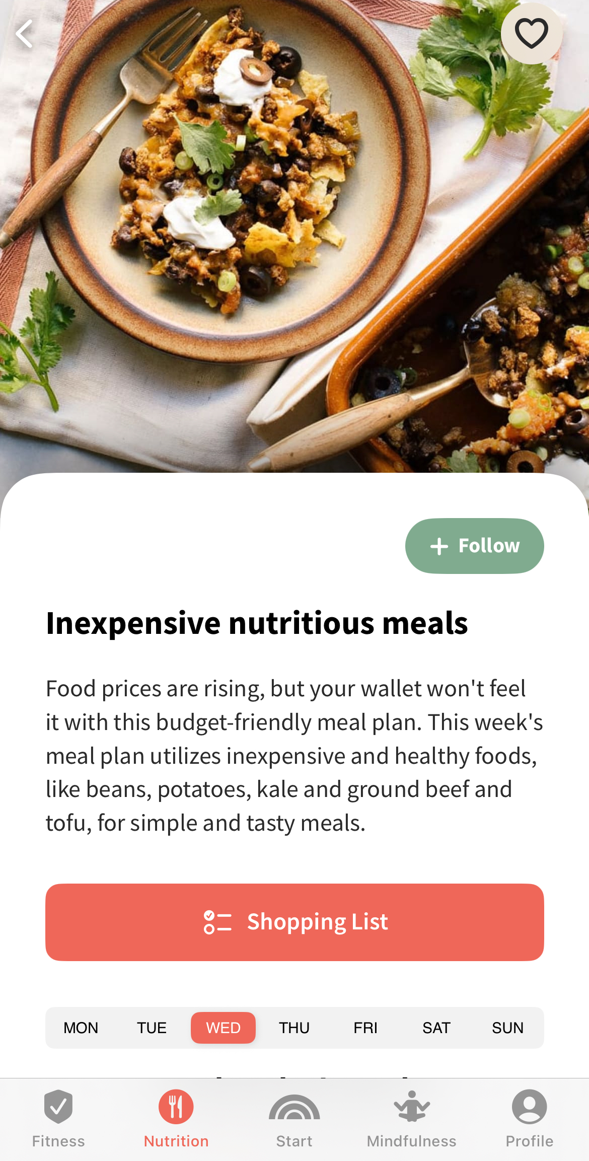 3. Tap on the the orange Shopping List button from your selected meal plan page.