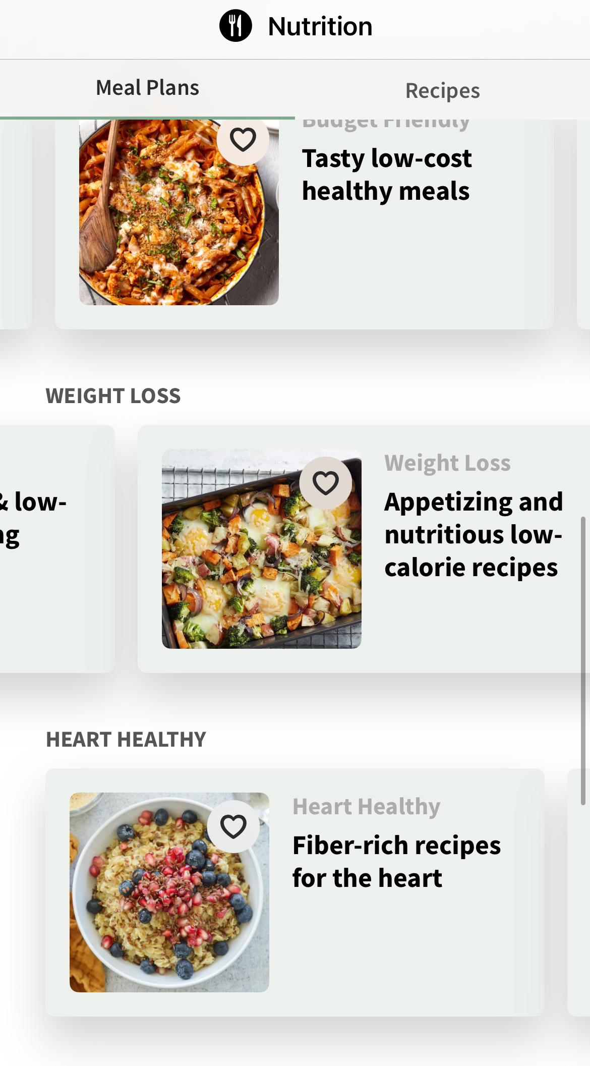 For easier access to your favorite meal plans and recipes, you can save them by tapping on the heart icon on the top right corner. When the heart turns orange, you will know it's been successfully added to your Favorites.